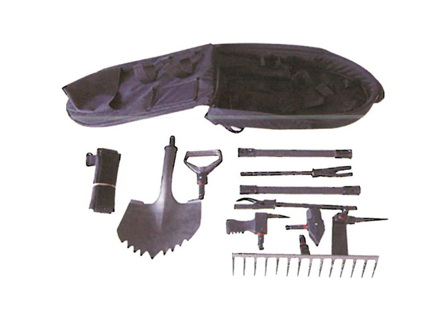 合金鋼材料制造,具有撬、錘、扭、切開和排除所有障礙物的功能??梢曰ハ啻钆?,通過自鎖桿件而組合成新的工具。使用“豪力根”鴨嘴形撬爺頭來撬物體,爺頭型敲錘來打碎混凝土,或者“派愛授”撬斧頭來砍碎物體。包含:包括2個15英寸長鎖定件、1個自鎖連接件、D字形把手、標準鉗、剪切鉗、撬斧頭、鴨嘴形撬爺頭、爺頭型敲錘、TTm mm尖齒形鏟、背包。